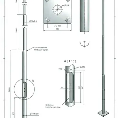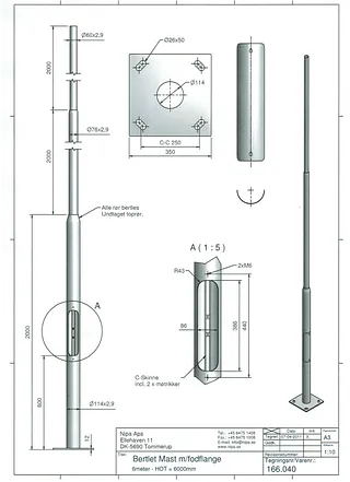 Bertlede master leveres i 5 højder (LPH) over terræn, - 5,0, 6,0, 7,0, 8,0 og 9,0 m monteret med udvendig luge.