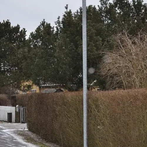 Cylindriske master med arm for sidemontage leveres som standard i 3 højder (LPH) over terræn i 5,0, 6,0, og 7,0 m.