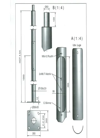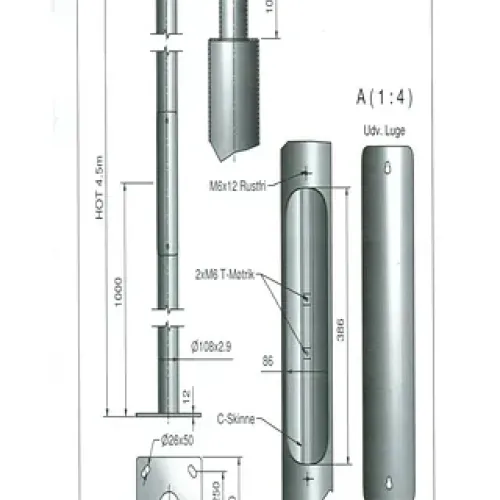 Cylindriske master leveres som standard i 6 højder over terræn, fra 3,0 til 6,0 (LPH).