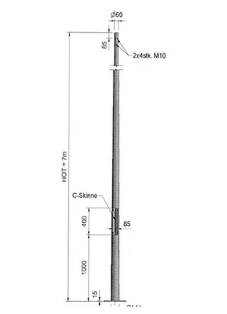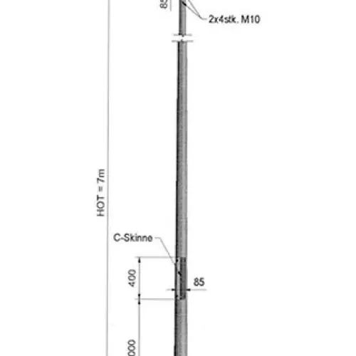 Koniske master i standardudførelse leveres i højder fra LPH 3 til 12 meter.