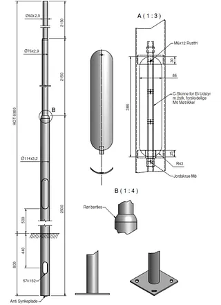 Masterne produceres både for nedgravning med antisynkeplade samt med fodflange, begge med toprør i Ø60mm.