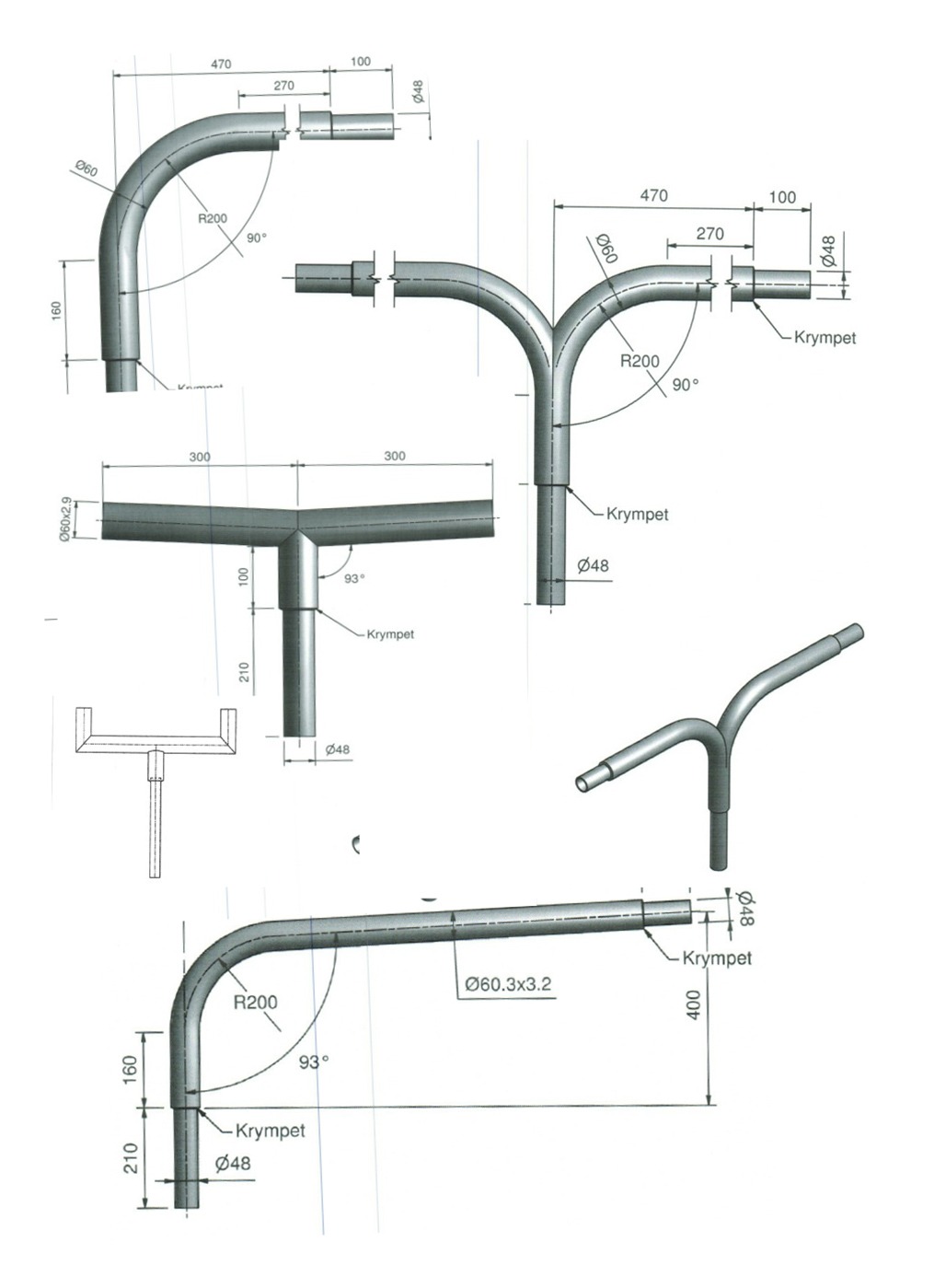 Armene produceres som standard med et maksimalt udlæg på 1,0 m, både som enkelt- & dobbeltarm.