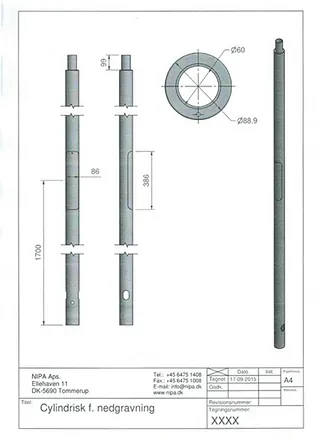 Cylindriske master leveres for nedgravning og som standard i 3 højder over terræn, i 3,0 m, 3,5 m, 4,0 m. (LPH).