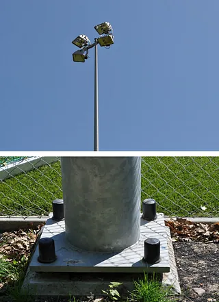 Koniske projektørmaster anvendes i stor udstrækning til belysning af sportspladser, havnearealer, lagerpladser, parkerings-områder mm.