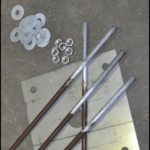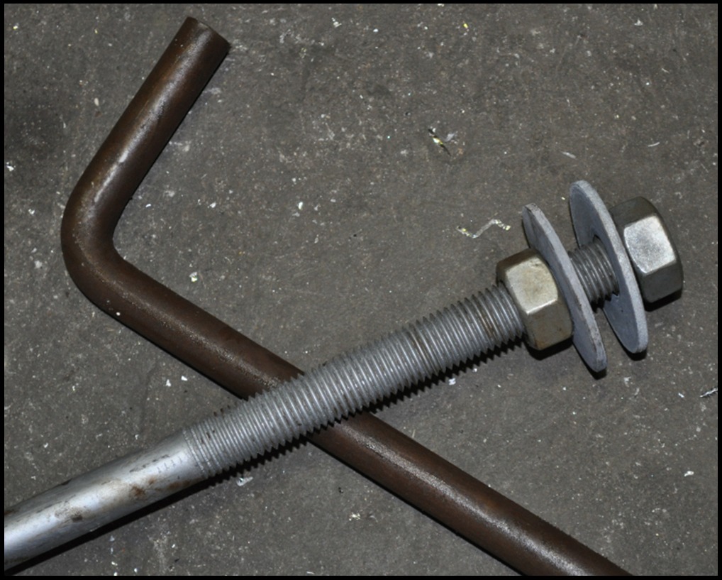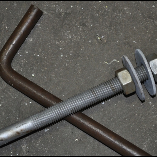 Fundamentsboltene leveres med ombuk og med galvaniseret gevind i øverste del med 2 møtrikker og 2 skiver pr. bolt.